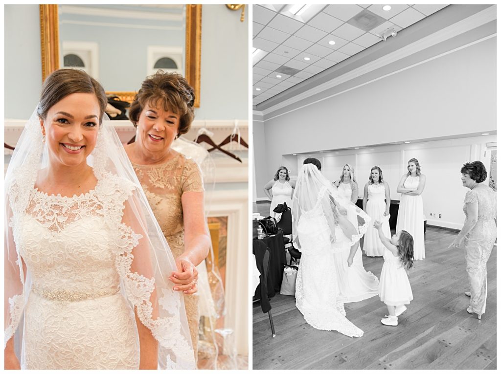 Changing into her mother’s gown for the rest of the reception.