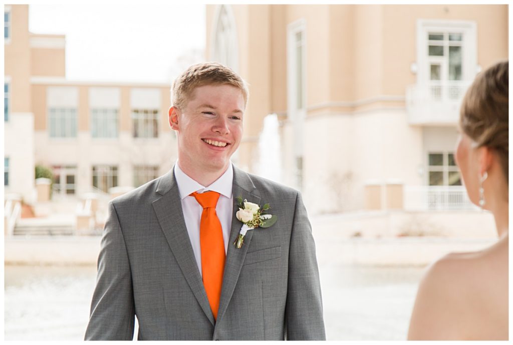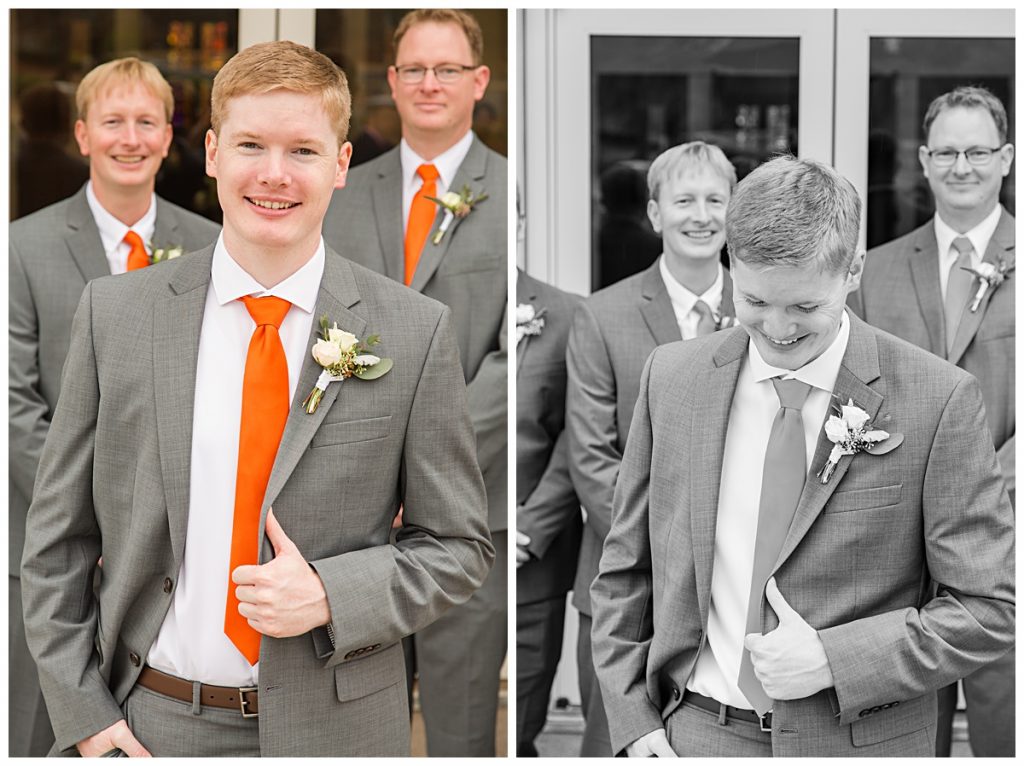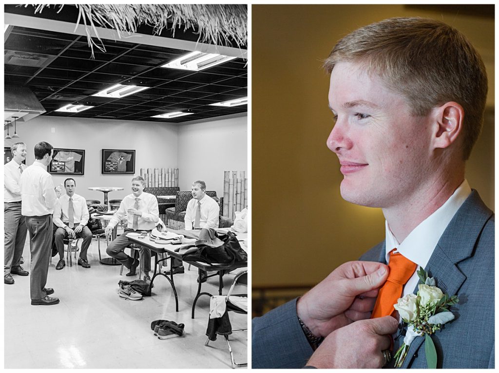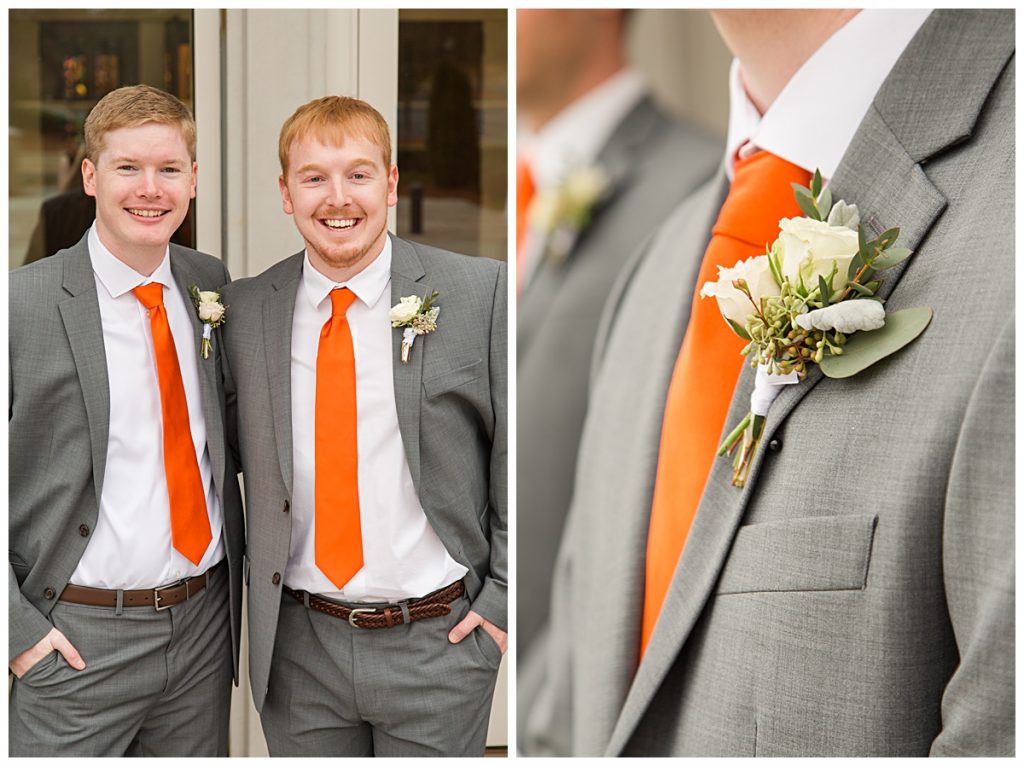 Clemson orange and class rings were proudly displayed as Wythe and most of his groomsmen were Clemson graduates. The ties were actually the perfect splash of color to compliment the light gray suits!