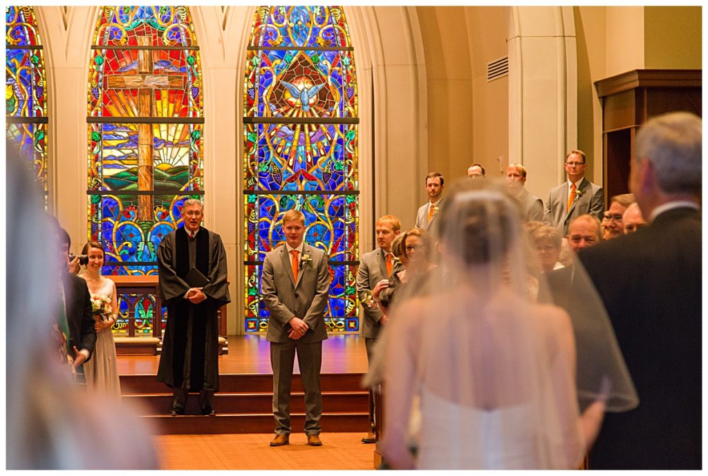 Even though they already had a first look you can still see all the emotion welling up in Wythe as he watches his bride walk down the aisle.